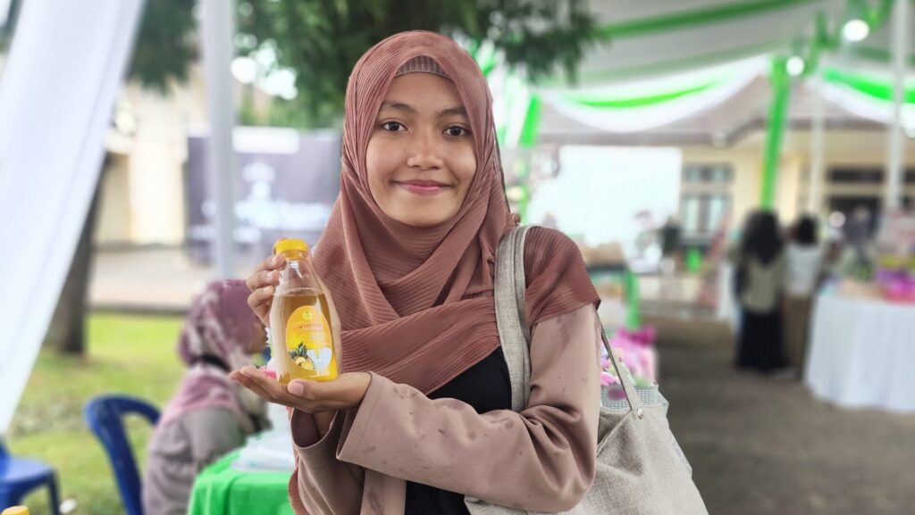 MENDALO,- Diah Fajar Ayu mahasiswi program studi Ekonomi Islam, Fakultas Ekonomi dan Bisnis, Universitas Jambi (UNJA) berhasil menciptakan inovasi sabun cuci piring dengan bahan dasar unik, yaitu kulit nanas. Produk tersebut diberi nama ‘Dishnas’.